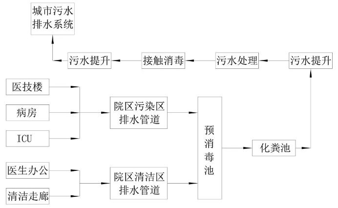 火神山醫院屬于新型冠狀病毒感染的肺炎傳染病醫院,按照GB50849《傳染病醫院建筑設計規范》第6.4.2條,“醫技、病房和ICU病房的污水應先排人化糞池,滅活消毒后應與廢水一同進(jìn)入醫院污水處理站,并應采用二級生化處理后再排人城市污水管道?!盙B18466《醫療機構水污染物排放標準》第4.1.1條規定“傳染病醫療機構污水排放一律執行表1的規定”。